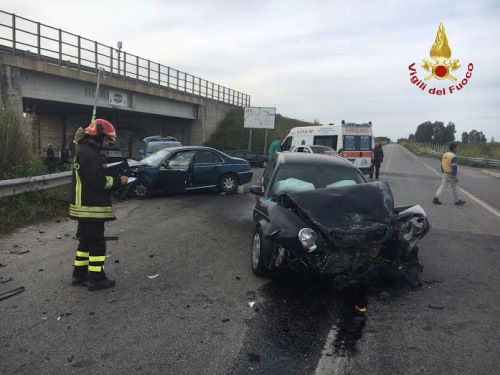 Nel pomeriggio di ieri 21 aprile, alle ore 17.00 circa, una squadra dei vigili del fuoco di Crotone, è intervenuta sulla ex SS 106 nel Comune di Crotone Località Margherita , per un incidente stradale. Nello scontro, tra due autovetture, sono rimasti feriti cinque persone, che sono state trasportate dai sanitari del 118 all'ospedale di Crotone.