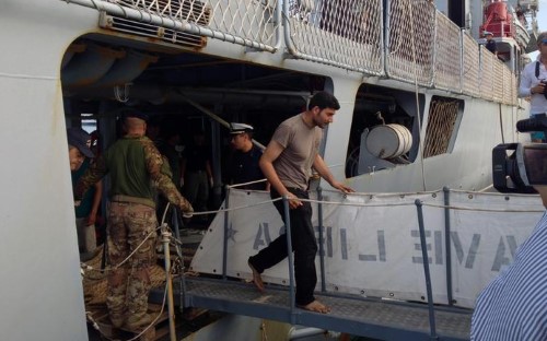 E' attraccata questa mattina al porto di Crotone la nave Libra della Marina Militare con centinaia di migranti soccorsi nei giorni scorsi nel Canale di Sicilia, mentre si trovavano a bordo di 5 diverse imbarcazioni.