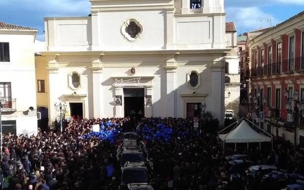 Un fiume di persone, ha voluto accompagnare la bara bianca nel suo cammino verso la Basilica Cattedrale, un'intera città si è fermata per dare l'ultimo saluto a Giuseppe, il diciottenne ucciso dalla mano assassina del suo dirimpettaio. Il fiume umano ha seguito commosso il feretro, accompagnandolo in silenzio. L'omelia funebre è stata celebrata da don Serafino Parisi che ha concelebrato la messa assieme ai parroci di tutta la città.