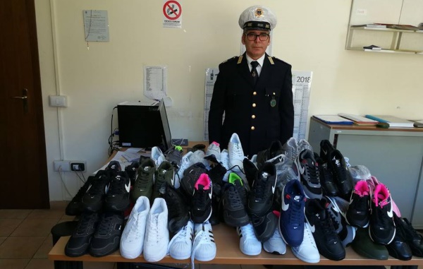 Sanzioni ai venditori ambulanti: sequestrate 36 paia di scarpe contraffatte.