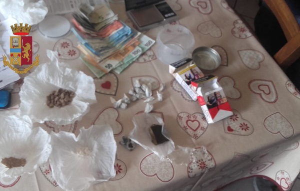 All’interno del'abitazione, in un’intercapedine, gli investigatori hanno rinvenuto un contenitore in plastica contenente hashish ed eroina; in un altro punto della casa recuperavano un secondo contenitore in vetro di una nota marca di cioccolatini piemontesi con all’interno cocaina ed eroina confezionata in bustine di cellophane pronte allo spaccio e, infine, nascosti sotto l’imbottitura di una sedia trovavano due pacchetti di sigarette pieni di altra droga già confezionata in singole dosi.