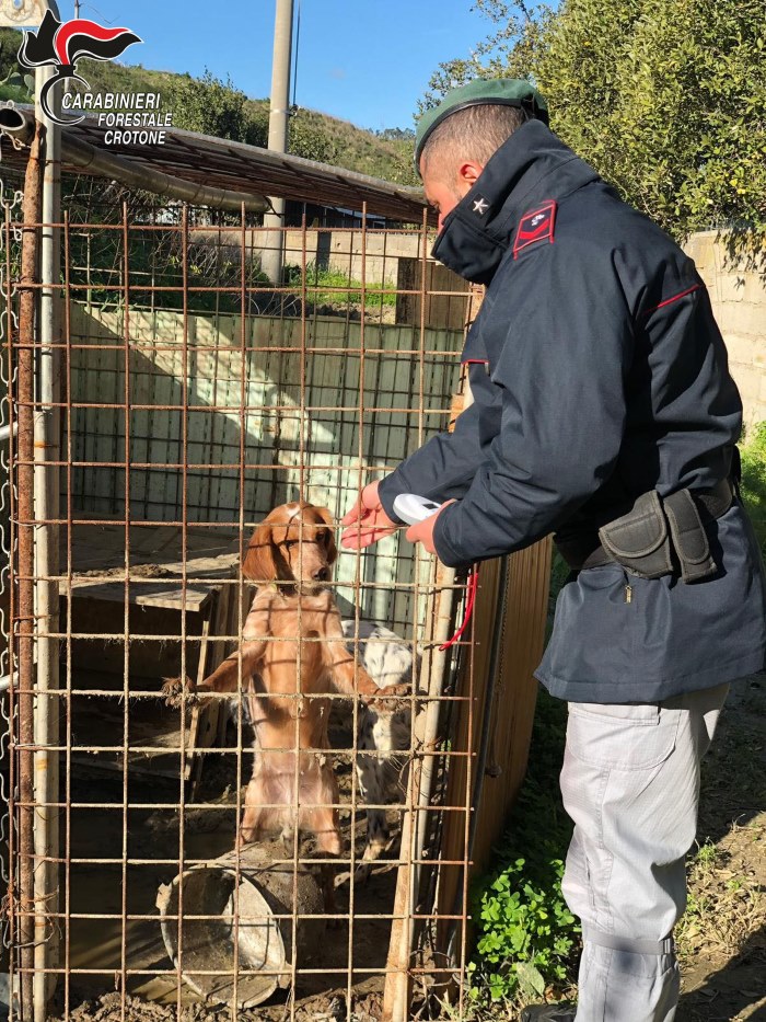 I militari della stazione CC forestale Crotone, nel corso di un sopralluogo eseguito nei giorni appena scorsi in seguito ad una segnalazione di volontari del WWF (World Wide Fund), hanno notato due setter inglesi detenuti in un ricovero precario realizzato su un terreno non sufficientemente protetto dalle intemperie e saturo d’acqua, con una rete da letto, una rete metallica elettrosaldata e lamiere arrugginite. Essi hanno chiesto subito l’intervento del Servizio veterinario dell’Azienda sanitaria provinciale.