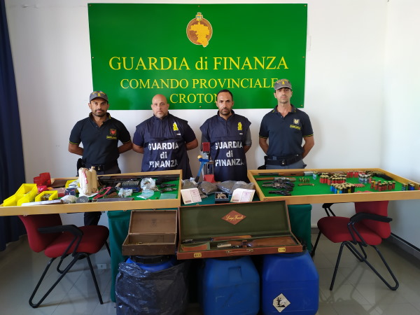 Imponente quantitativo di armi sequestrato dai finanzieri di Crotone nell’ambito del dispositivo permanente di contrasto ai traffici illeciti nonchè del rafforzamento straordinario di sicurezza economico-finanziario per la stagione estiva 2019, disposti dal Comando generale della Guardia di finanza.