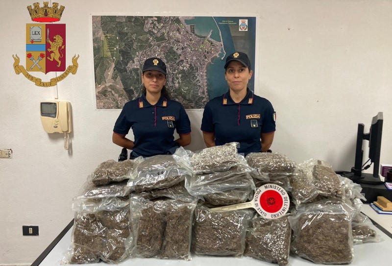 Nel corso di una serie di specifici servizi, disposti dalla Questura di Crotone, volti a contrastare il fenomeno dello spaccio di sostanze stupefacenti, personale della locale Squadra Mobile, unitamente a unità cinofile di Vibo Valentia, ha rinvenuto e sequestrato, in località Gabella del Comune di Crotone, nei pressi di un canale di scolo, 2 sacchi neri, contenenti 41 involucri con all’interno sostanza stupefacente del tipo marijuana, per un totale di circa 20 Kg.