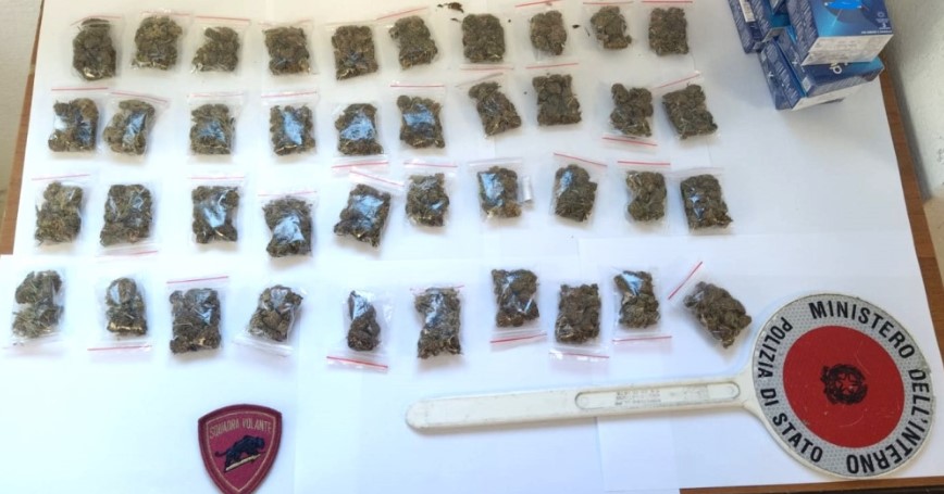 Nel capoluogo, l’attività di contrasto allo spaccio di stupefacenti da parte del personale dell’Ufficio Prevenzione Generale e Soccorso Pubblico, ha consentito di rinvenire diverse dosi di marijuana, pronte per lo smercio, occultate nel vano contatori dell’acqua, ubicato sulla pubblica via, nelle immediate adiacenze di un esercizio commerciale di Via Marinella.