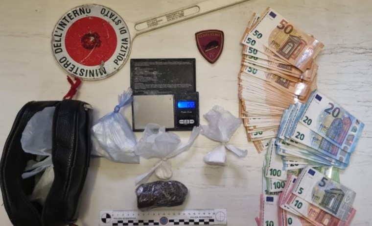 A seguito del rinvenimento del denaro, gli operatori hanno proceduto anche al controllo della sua abitazione, ubicata nelle immediate vicinanze, che ha consentito di ritrovare tre involucri contenenti complessivamente 131 grammi di cocaina, 86 grammi di hashish, un bilancino elettronico di precisione, e materiale per il confezionamento delle dosi di stupefacente.