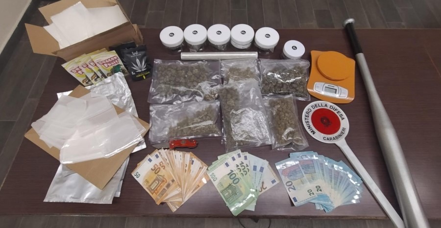 Il controllo che ne è derivato ha consentito di trovare, all’interno dell’abitazione, circa 280 grammi di marijuana in dodici distinti contenitori, oltre a un bilancino di precisione, un coltello a serramanico e molte buste trasparenti di piccole dimensioni, insieme a parecchio denaro contante.
