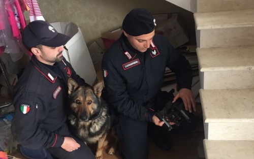 Le attività di perquisizione iniziate all’alba sono state condotte dai militari nei vari obiettivi con una certa difficoltà visto anche la grandezza degli spazi: tuttavia il Cane- Carabiniere Willy riusciva ad percepire una traccia nel box dell’abitazione dello Scalise, ove veniva rinvenuti abilmente occultati una 80ina di proiettili calibro 9 e cal.22.