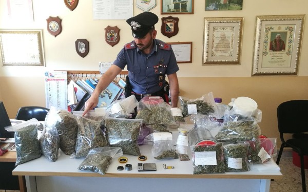 Al piano superiore invece, in uso al padre del giovane C.B., sessantaquattrenne commerciante del luogo, venivano ritrovati, occultati in un ripostiglio adiacente alla cucina, svariati barattoli contenenti differenti qualità di cannabis per un totale di quasi 400 grammi di sostanza stupefacente. Infine nel sottotetto dell’abitazione i militari individuavano il luogo in cui la droga era stata prodotta mediante l’utilizzo di vasi e lampade alogene con le quali, con l’aiuto di un sistema di irrigazione rudimentale, venivano coltivate le piante.