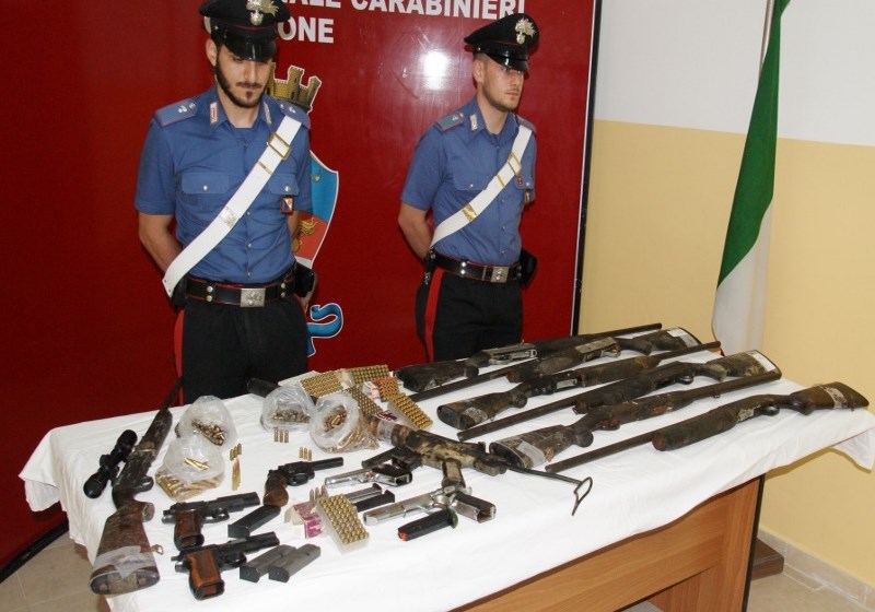 Sei fucili, due carabine, cinque pistole, unizionamento da guerra e detenzione di armi clandestine: in manette due cutresi.