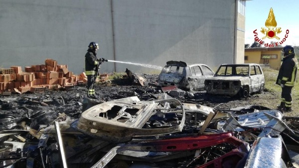 L'incendio sviluppatosi su dei cumuli di rifiuti, a causa del forte vento, ha immediatamente raggiunto le due autovetture. All'arrivo sul posto, i vigili intervenuti hanno immediatamente spento le fiamme, evitando che l'incendio potesse causare ulteriori danni