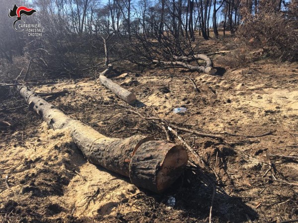 Durante un controllo volto a sventare i numerosi abbattimenti illegali di alberi nella pineta litoranea nella località Sovereto i militari della stazione CC forestale Crotone, insieme a quelli delle stazioni CC forestale Santa Severina e di Petilia Policastro intervenuti per supporto, hanno sorpreso due uomini, uno intento a depezzare l’altro a caricare su un autocarro la legna ricavata dall’abbattimento di pini.