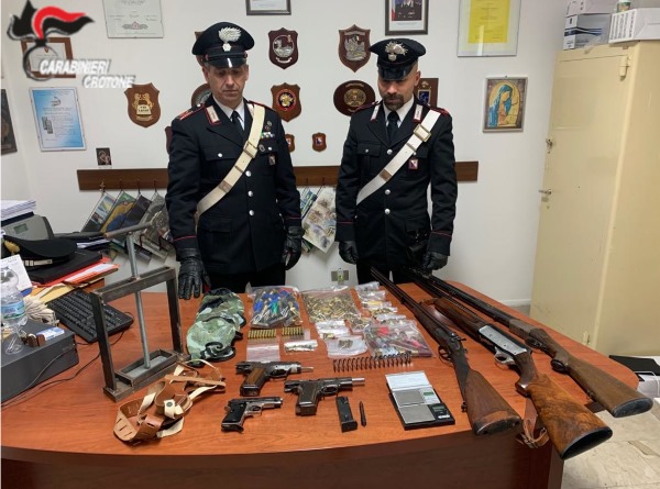 I militari, a seguito di accurata perquisizione domiciliare, hanno rinvenuto in un magazzino nella disponibilità dei due coniugi, diverse armi di vario calibro con matricola abrasa nonche’ svariate munizioni, anch’esse di vario calibro, tutto sottoposto a sequestro. Gli arrestati, su disposizione della competente Autorità Giudiziaria, venivano sottoposti alla misura cautelare degli