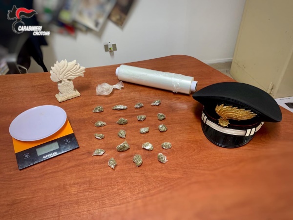 I carabinieri della Tenenza Isola di Capo Rizzuto hanno arrestato un 21enne di Cutro, ritenuto responsabile di detenzione ai fini di spaccio di sostanza stupefacente.