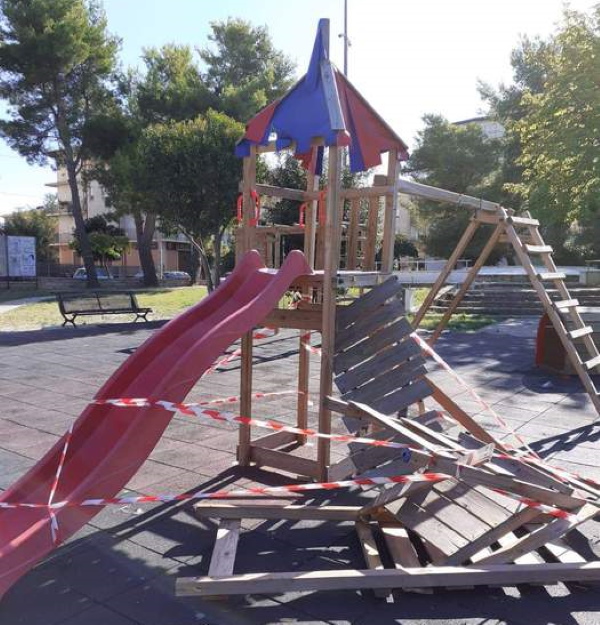 I giochi della villa comunale di Cutro sono stati distrutti da vandali non identificati. In particolare sono stati danneggiati uno scivolo e un'altalena.