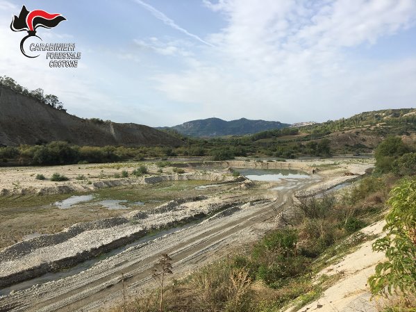 Secondo i militari intervenuti il materiale dei cumuli preveniva, senza ombra di dubbio, dalla depressione artificiale individuata nell’alveo fluviale. L’area di escavazione, sita nella loc. Fondo Barco del territorio del comune di Rocca di Neto, secondo gli accertamenti eseguiti è estesa circa 5.000 mq.