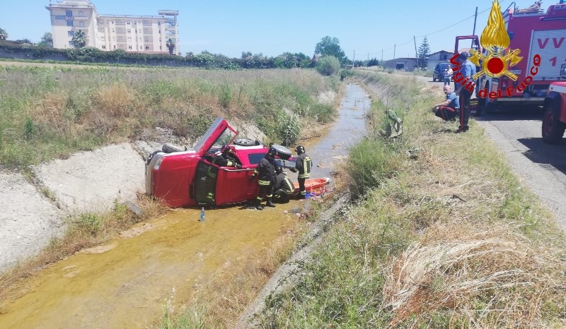 La squadra, arrivata sul posto, trovava un'autovettura andata fuori strada, che terminava la sua corsa in un canalone. Alla guida vi era un uomo di 89 anni, che rimaneva incastrato nell'abitacolo, dove i vigili del fuoco, hanno dovuto attuare delle manovre di primo soccorso sanitario (TPSS) per estrarlo, e consegnarlo ad una ambulanza della Misericordia di Isola Capo Rizzuto, che lo trasportava all'ospedale di Crotone.