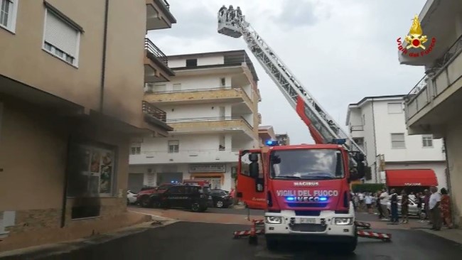 Le due squadre dei vigili, insieme al funzionario di servizio, intervenute immediatamente, hanno contemporaneamente estinto l'incendio all'interno della rimessa, e con l'ausilio dell'autoscala evacuati sei persone tra cui una bambina, dalle verande degli appartamenti, mettendoli al sicuro sulla strada, e alcuni, controllati dai sanitari del 118 presenti sul posto.