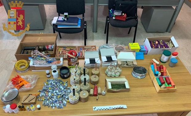 In particolare, oltre a numerosissime scatole e barattoli contenenti polveri esplosive e spezzoni di miccia, venivano rinvenute e sequestrate 24 bombe carta, 68 ordigni esplosivi tipo “caramella”, più di 1000 apparecchi per innesco, circa 150 accenditori elettrici e 2 ricevitori per l’accensione da remoto, nonché sostanze chimiche utilizzate nella preparazione degli esplosivi. Ultimate le formalità di rito l’arrestato è stato associato presso la locale casa circondariale.
