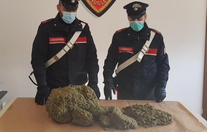 Inizialmente identificato, il comportamento dell’uomo classe 1984, non residente in provincia di Crotone, incuriosiva i carabinieri che quindi approfondivano i controlli procedendo alla perquisizione personale e veicolare dell’uomo. Durante il controllo, all’interno del veicolo, i militari rinvenivano un sacco di plastica nero di quelli comunemente utilizzati per i rifiuti, che però, stavolta, conteneva all’interno 5 kg di marijuana, pronti per essere immessi sul mercato.
