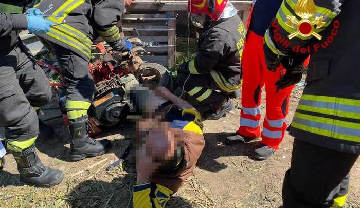 Un agricoltore di 39 anni è rimasto intrappolato sotto un motozappa che stava conducendo per arare un campo. E' accaduto nella tarda mattinata in località Lago Sant'Anna nel comune di Isola Capo Rizzuto.