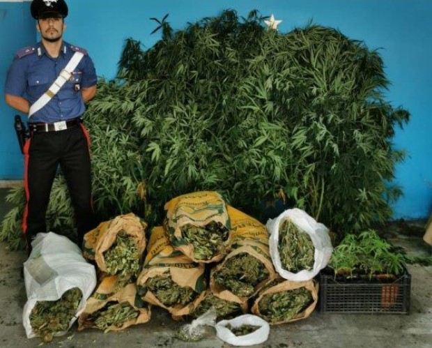 In Isola di Capo Rizzuto, in un magazzino costruito in un terreno agricolo di sua proprietà, i militari hanno rinvenuto, infatti, ben 18 chilogrammi di marijuana, un bilancino di precisione e vario materiale per la defogliazione ed il confezionamento della sostanza stupefacente.