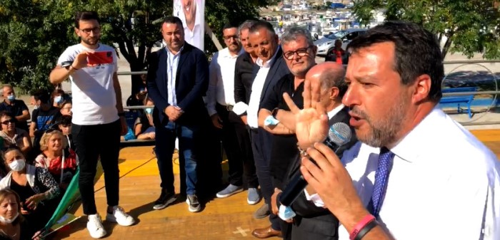Nella città del vino Salvini accompagnato dal Presidente della Regione Calabria Nino Spirlì, dal Commissario regionale Giacomo Saccomanno, dal Commissario provinciale di Crotone e Sub commissario regionale Cataldo Calabretta, è stato salutato ed accolto da un autentico bagno di folla. All’incontro pubblico erano presenti anche i candidati al consiglio regionale della Calabria con la Lega per Roberto Occhiuto Presidente, Pina Scigliano, Nicola Daniele, Pino Macrì e Filippo Mancuso.