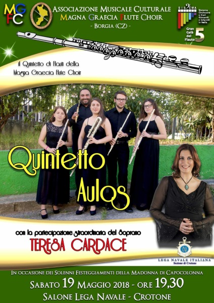 Al fianco del soprano lirico il quintetto "Aulos" composto dai musicisti: Asia Guerrisi, Sebastiano Valentino, Claudio Lumare, Giulia Curcio e Maddalena Cefali. L'evento sarà replicato il giorno successivo a Santa Severina alle 16,30 presso il Castello.