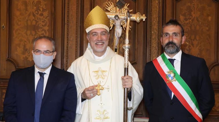 La città, alla presenza dell’amministrazione comunale, autorità civili, militari e numerosi fedeli, ha potuto così accogliere il Pastore, insediatosi lo scorso 2 ottobre ed alla sua prima visita ufficiale con i fedeli della città sul tirreno. Per questa occasione è stato dato incarico al maestro orafo Michele Affidato, di realizzare uno dei simboli episcopali che accompagneranno la missione pastorale di Mons. Nostro: la Croce Pettorale.