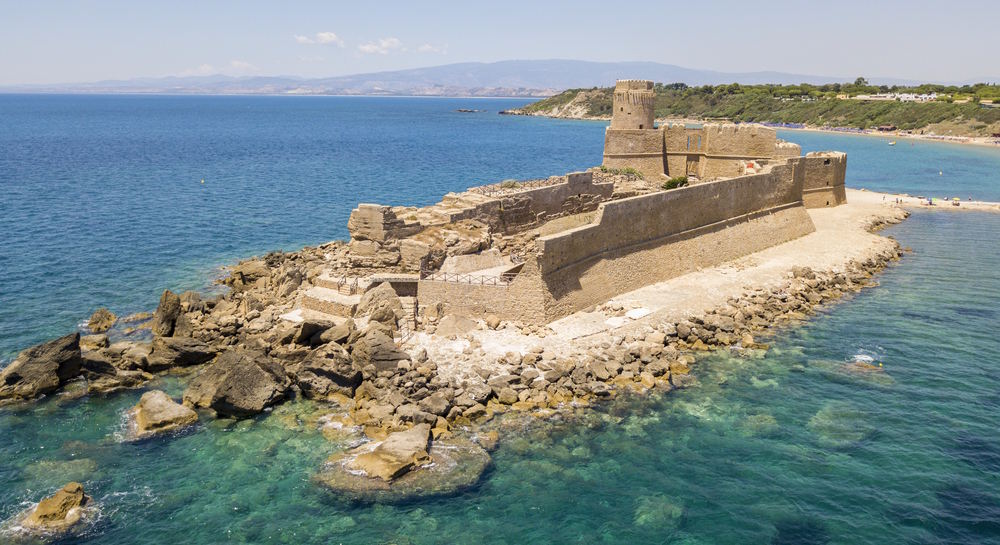 In Calabria il sole si riflette su un mare che sembra dipinto: turchese, cristallino, irresistibile. Nella zona di Le Castella dettaglia il contorno perfetto della costa ionica, dove la rocca aragonese spunta come un guardiano sospeso tra cielo e mare. La macchia mediterranea avvolge la terrazza naturale, gli scogli modellati dal tempo aggiungono carattere, i riflessi dell'acqua promettono relax. Sorseggiare un buon cocktail al tramonto mentre si ammira quel castello è un’esperienza che resta.
