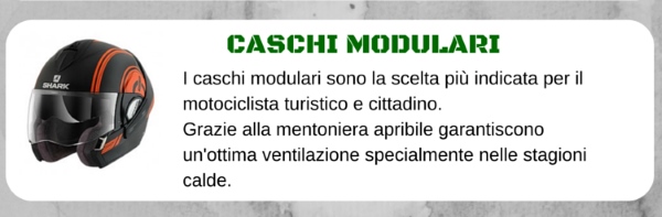 In commercio vi sono alcune varietà di prodotti, a seconda delle diverse esigenze di ogni motociclista, tra quelli più venduti, per i piccoli spostamenti, specie in città, sicuramente trovano un posto di rilievo i caschi modulari, che sono modelli ibridi, ossia una via di mezzo tra quelli integrali e quelli Jet.