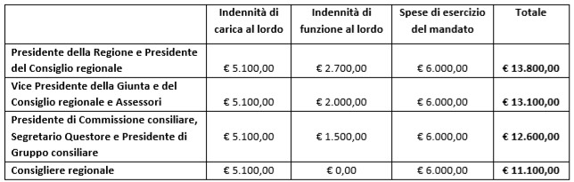 Nella tabella di lato le indennità di carica percepite attualmente dai consiglieri regionali e dai membri della giunta della Regione Calabria. Le motivazioni che accompagnano l'iniziativa fanno perno sulla difficile situazione socio-economica dei calabresi.