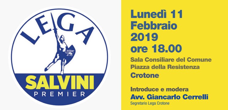 Lunedì 11 febbraio p.v., dalle ore 18,00 si terrà a Crotone, presso la Sala Consiliare del Comune pitagorico, un importante convegno dal titolo: “L’impegno della Lega Giovani per Crotone e la Calabria”.