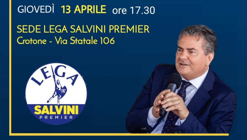 Si terrà giovedi prossimo 13 aprile presso la sede provinciale della Lega di Crotone un atteso incontro tra militanti e simpatizzanti del partito con il presidente del Consiglio regionale della Calabria Filippo Mancuso.