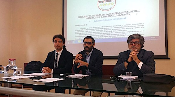 In conferenza stampa presso la biblioteca civica di Quattromiglia di Rende (Cs), i deputati Paolo Parentela e Giuseppe d'Ippolito hanno presentato la proposta del Movimento 5stelle sul servizio idrico integrato regionale, affidandone l'introduzione al consigliere comunale rendese Domenico Miceli.