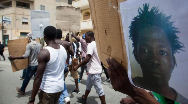 Gruppo di maliani della vecchia tendopoli in corteo verso il municipio di San Ferdinando.