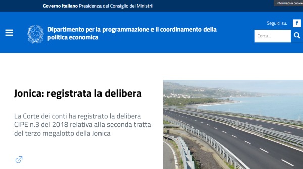L’Associazione “Basta Vittime Sulla Strada Statale 106” sottolinea quanto la rilevanza che il Governo Italiano ha voluto dare alla notizia – anche attraverso la pubblicazione nella Home Page del sito del DIPE – è rappresentativa dell’importanza del momento.