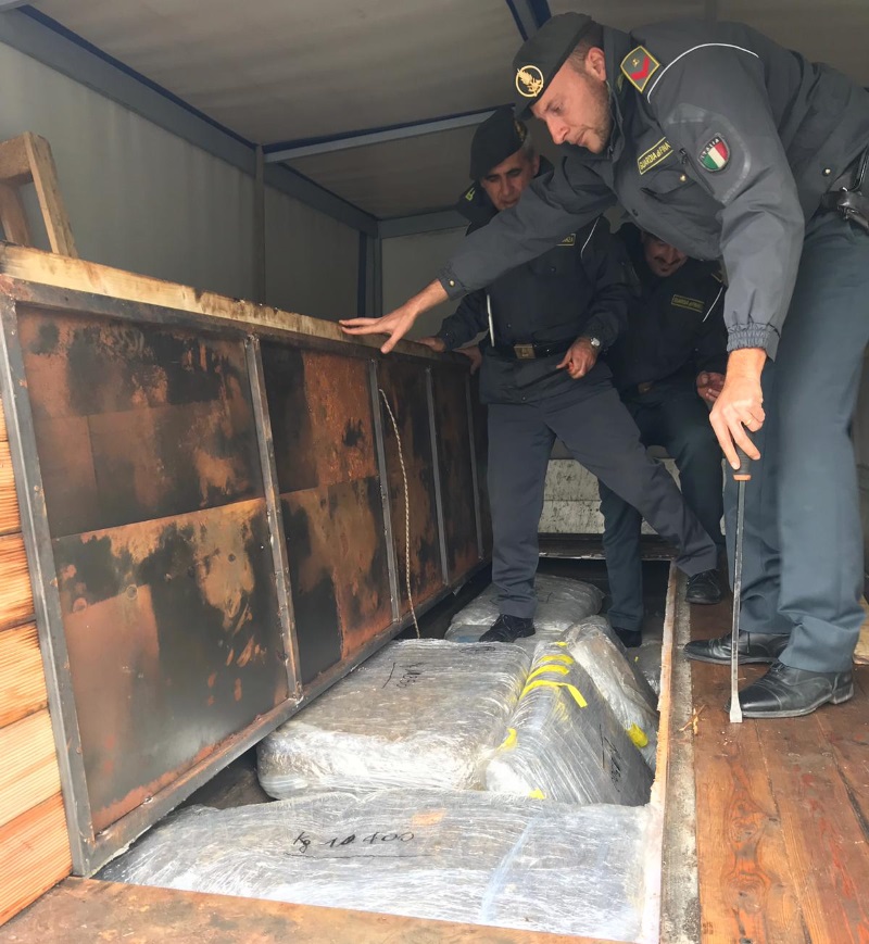 La droga trasportata nel cassone dell'autocarro telonato guidato da un cittadino albanese di 32 anni.