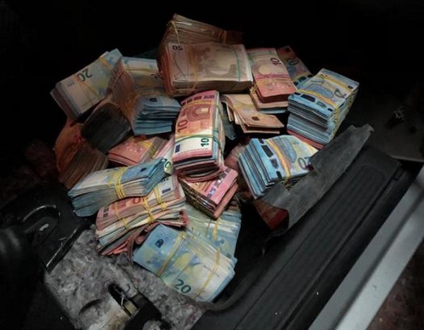 Insospettiti dal nervosismo, i finanzieri hanno perquisito l'auto con l'ausilio di un'unità cinofila trovando, dietro il sedile del passeggero, un borsone con il denaro suddiviso in mazzette di vario taglio. Il controllo allargato al portabagagli ha permesso di trovare altre banconote in una busta di plastica.