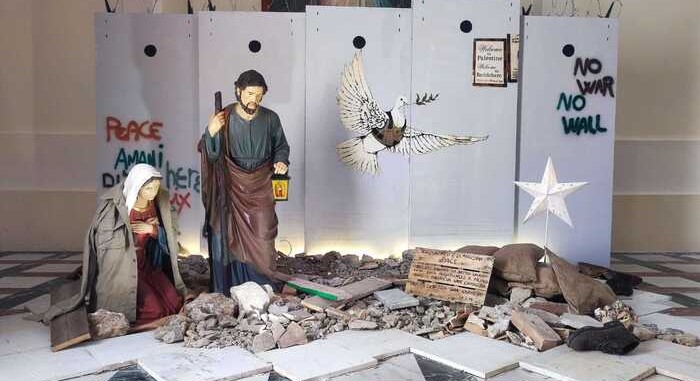 Sull'altro lato, invece, accanto a "No war. No wall" compare la scritta "Welcome to Palestine. Welcome to Bethlehem". E' questo il presepe realizzato nella parrocchia Santa Maria Cattolica Maggiore a Cortale, nella Diocesi di Lamezia Terme, dove, tra i detriti sparsi per terra, campeggia una grata in legno su cui è riportato un brano tratto dalla Lettera di Paolo agli Efesini: "Egli, infatti, è la nostra pace colui che di due ha fatto una cosa sola, abbattendo il muro di separazione che li divideva, cioè l'inimicizia, per mezzo della sua carne".
