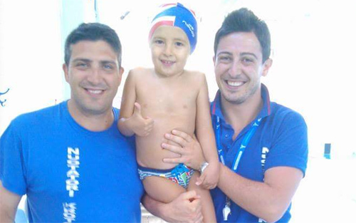 Nella foto il piccolo Andrea con i suoi istruttori.
