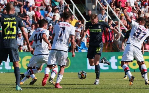 Inter che passa in vantaggio con Skriniar all'80°: calcio di punizione dall'altezza del corner sinistro. Joao Mario sul pallone, palla al centro, riceve Skriniar che la mette dentro. Giallo per Cordaz.