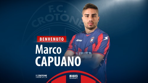 Il Football Club Crotone comunica di aver acquisito il diritto alle prestazioni sportive del calciatore Marco Capuano. Il giocatore arriva in prestito con obbligo di riscatto al raggiungimento di determinati obiettivi sportivi, dal Cagliari Calcio. Nato a Pescara il 14 ottobre 1991, Marco è un difensore centrale che, all’occorrenza, può agire anche come esterno basso di sinistra e, nonostante i suoi 26 anni, ha già tanta esperienza: sono infatti oltre 150 le presenze che vanta nel suo curriculum con le maglie di Cagliari e Pescara, oltre alle 18 collezionate con l’Under 21.