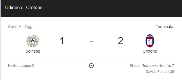 Il Crotone vince a Udine, conquista tre punti fondamentali e condanna il Benevento alla serie B