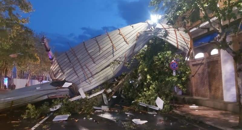 Questa notte intorno alle 3:00 una violenta tromba d'aria ha divelto il tetto del supermercato MD e dell'adiacente negozio Trony, situati nell'area della stazione pullman Romano di via G. Di Vittorio. Il tetto in lamiera è