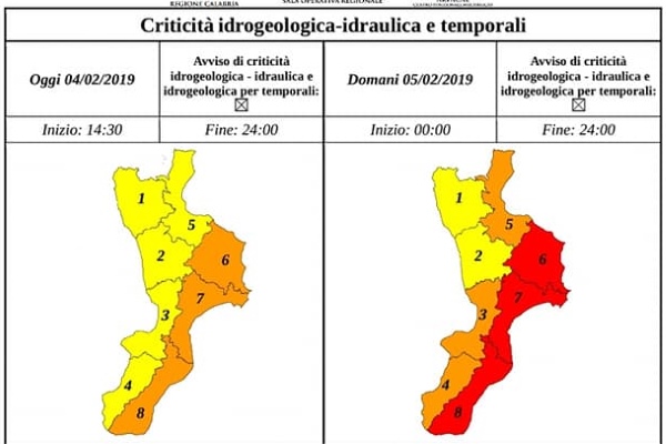 La protezione civile regionale ha diramato il bollettino di allerta meteo arancione per oggi 4 febbraio e ROSSA per il 5 febbraio. Scuole chiuse a CrotoneAllerta meteo arancione