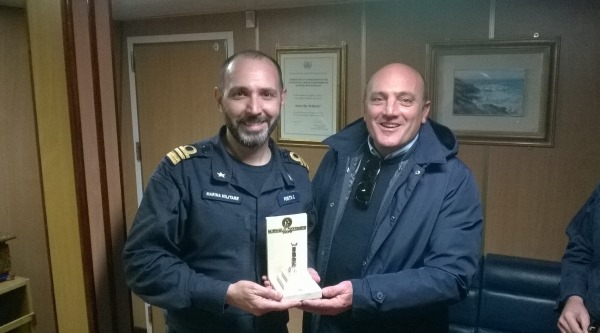 Grazie anche alla sinergia con la Capitaneria di Porto di Crotone, la nave è approdata in città ed il sindaco ha voluto personalmente ringraziare per la opportunità data alla comunità di conoscere una nave che rappresenta un vanto della Marina Militare Italiana. Il sindaco Pugliese ha ringraziato in particolare il comandante della nave Giuseppe Porta estendendo la gratitudine a tutto l’equipaggio non solo per la visita ma per rappresentare un presidio importante per la sicurezza di tutto il paese. Il comandante Giuseppe Porta ha fatto omaggio al sindaco di un crest della nave.
