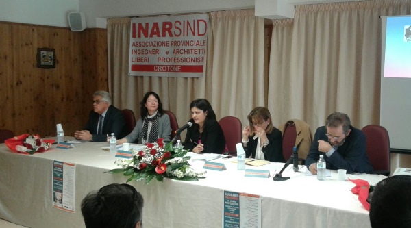 Un’organizzazione che difenda e promuova libera professione è di fondamentale importanza in un questo lungo periodo di crisi che ha significativamente impoverito gli studi professionali. Dopo i saluti istituzionali con l’ing. De Carlo per l’ordine degli Ingegneri, l’arch. Danilo Arcuri per l’Ordine degli Architetti e l’arch. Nuccio Renda Presidente di Inarviluppo, si è dato spazio ai relatori: il comunicato di Pino De Lucia (assente per motivi di salute) della Cooperativa Agorà letto dal Sig. Luigi Barletta, la dott.ssa Angela Robbe Presidente Pari Opportunità Provincia di Catanzaro e Presidente Legacoop Calabria su ” L’ apporto del Libero Professionista per uno sviluppo integrato del Terzo Settore", l'ingegnere Federico Roberto Antonio delegato Inarcassa Ingegneri Crotone su “Il (non) ruolo del Libero Professionista nel contesto Nazionale, Regionale e Provinciale”, ing. Ciccio Galluccio Coordinatore Inarsind e Resposabile Confprofessioni Calabria su “Esperienza e formazione sindacale e libero professionale” e l'Ing. Michela DIRACCA Presidente Nazionale INARSIND su “Il ruolo di INARSIND nel contesto della libera professione”.
