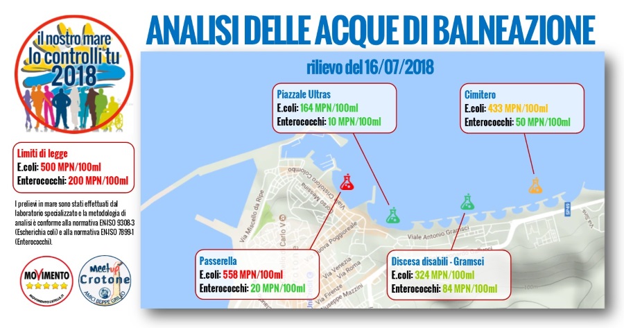Al via il controllo del mare crotonese da parte del meetup Amici di Beppe Grillo: Dati positivi su 3 dei 4 rilevamenti.