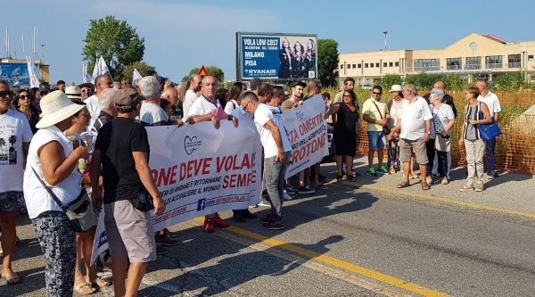 Due giorni di manifestazioni per ribadire con forza che Crotone non vuole rinunciare a volare. Giovedì 30 agosto protagonista è stato il cittadino Nando Amoruso con un sit-in ad oltranza all'ingresso dell'aeroporto, mentre venerdì 31 agosto due sono stati gli appuntamenti organizzati in occasione dell'ultimo volo Ryanair della stagione estiva da e per Pisa.